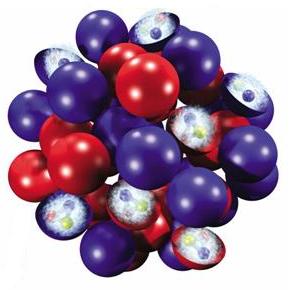 Les nucléons sont les constituants du noyau atomique. On les appelle protons et neutrons et ils ont sensiblement la même taille : 10-15m et la même masse : 1.67 x 10-27 Kg.